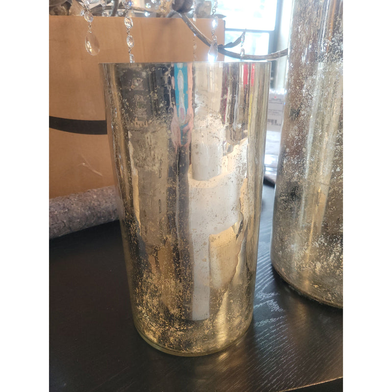 Short Gold Mercury Glass Pillar Candle Holder
